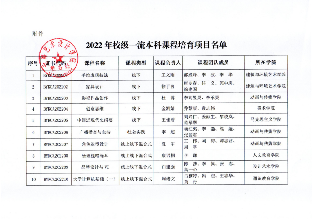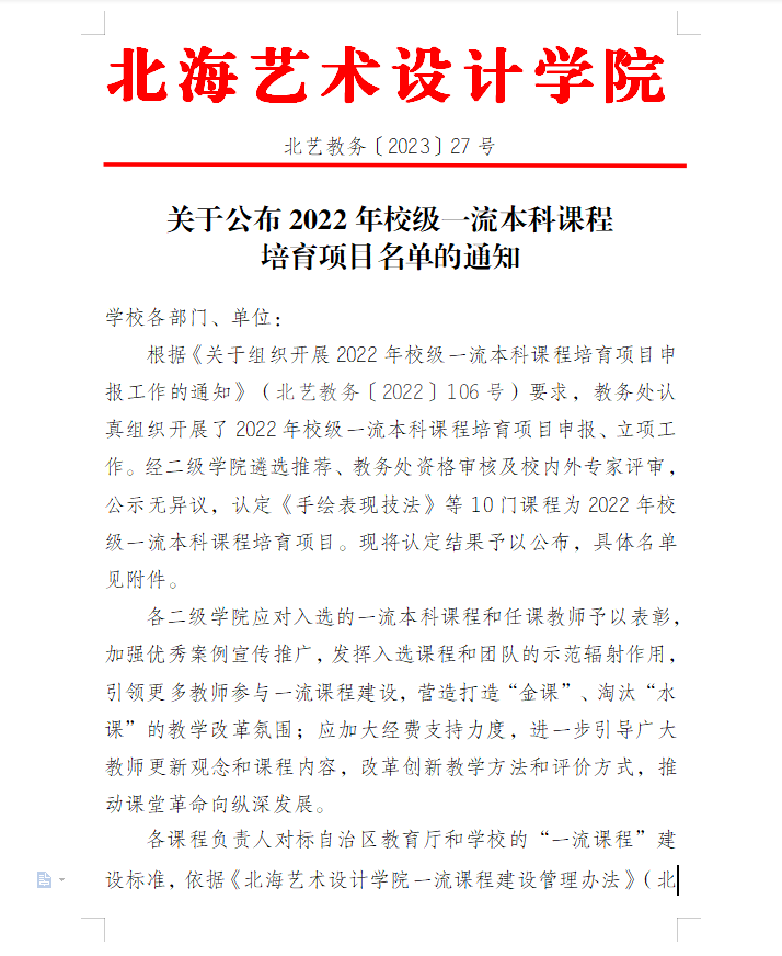 北艺教务〔2023〕27号 关于公布2022年校级一流本科课程培育项目名单的通知