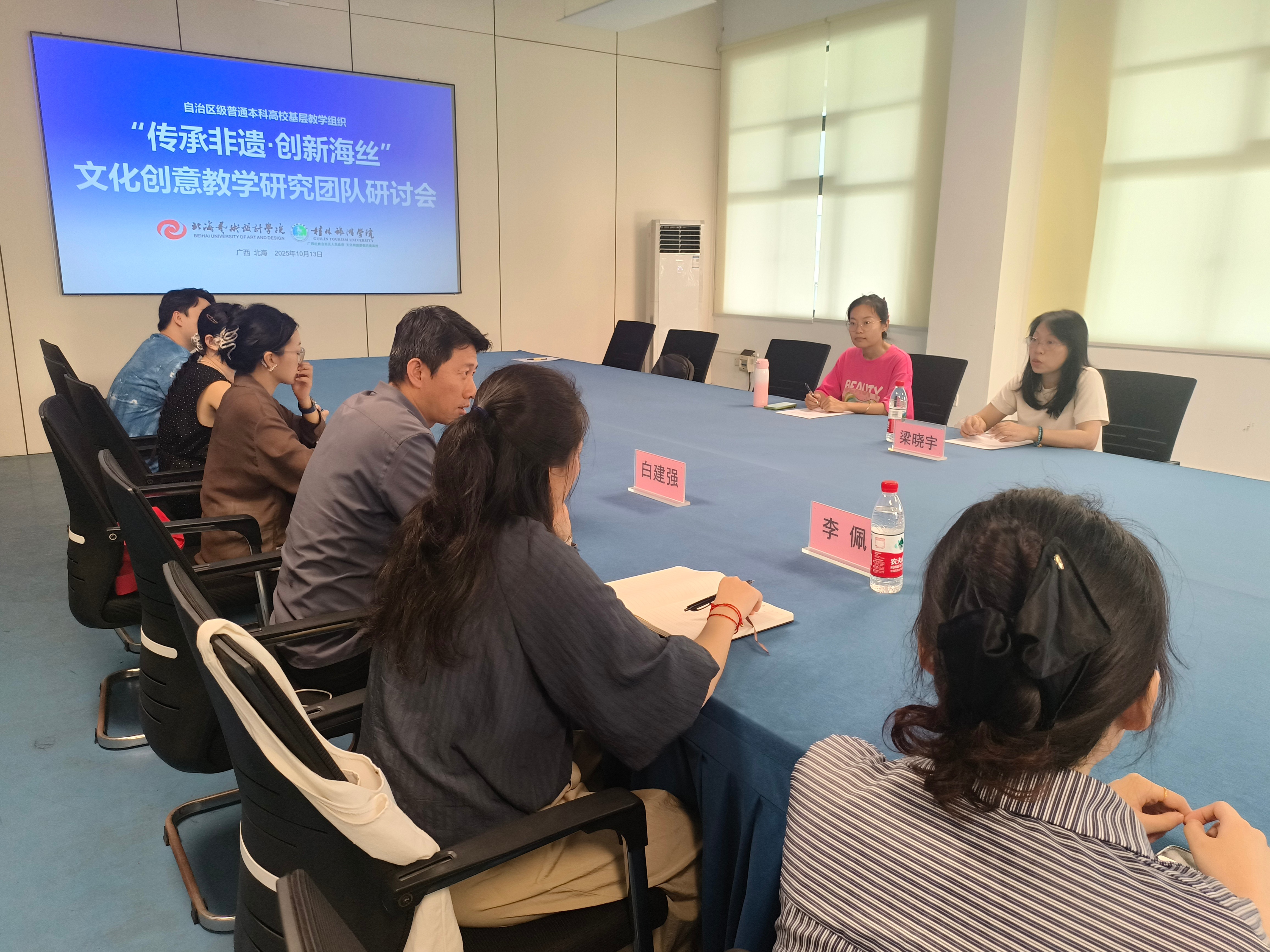 近日,“传承非遗·创新海丝”文化创意教学研究团队邀请桂林旅游学院梁晓宇副教授为青年教师开展关于科研项目申报的培训活动,培训由团队负责人设计艺术学院副院长白建强主持,李佩副院长及团队成员出席。