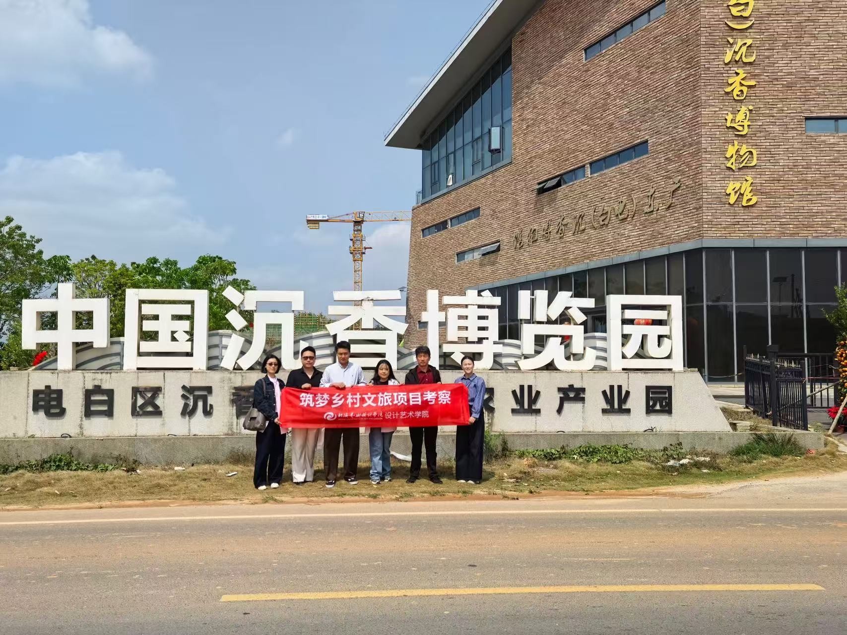 开展设计行业人才培养需求调研同时团队前往茂名市电白区沉香种植生产基地开展广州筑梦乡村文化旅游研究院有限公司委托的沉香品牌设计项目考察。在电白镇李芳的镇长陪同下,走访了沉香种植基地、加工车间以及特色文旅点位,实地了解沉香产业在品牌视觉设计、文创产品开发等方面的实际需求。