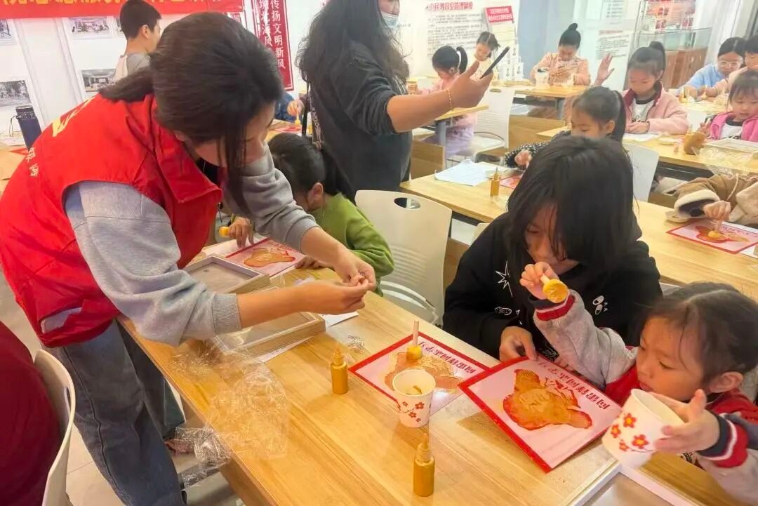 次日,雷锋主题手工课堂接续开展。志愿者们准备好材料,手把手带领孩子们通过拓印和拼贴定格雷锋光辉形象,将对榜样的崇敬融入每一件作品。创作过程中,志愿者们重温雷锋事迹,让红色教育与动手实践深度融合。